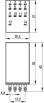Конструкция реле предусматривает как непосредственную припайку проводников к его контактным выводам, так и использование контактных колодок (разъемов) типа РРМ (приобретаются отдельно), позволяющих устанавливать их как на монтажную рейку (DIN-рейку) шириной 35 мм, так и на монтажную панель.