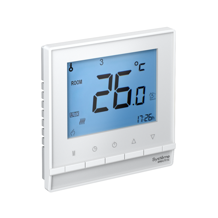 Термостат электронный программируемый из коллекции электроустановочных изделий AtlasDesign от Schneider Electric.