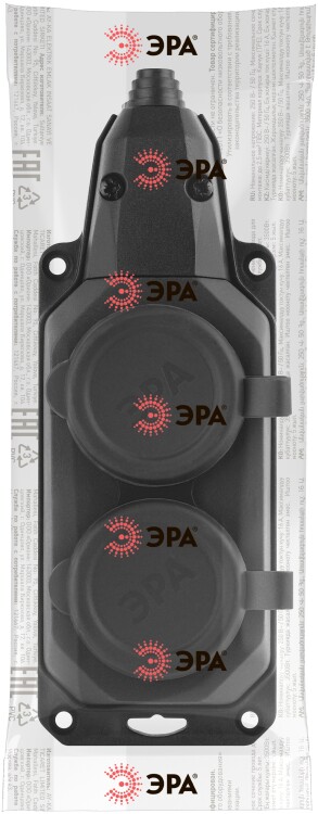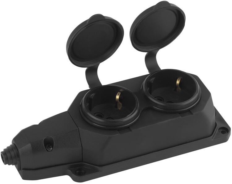 Колодка двухместная K-2e-B-IP44 "Эра" (16 А, IP44, каучук) с заземлением и защитными крышками, черный