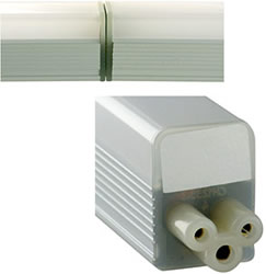 Соединительные разъемы встроены в корпус светильника, благодаря чему светильники могут соединяться в беспрерывную светящуюся линию.