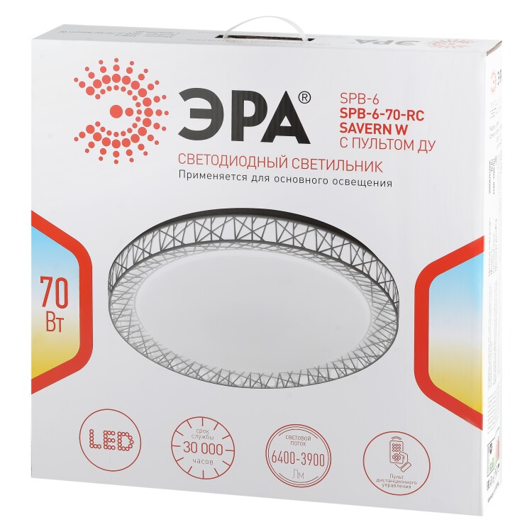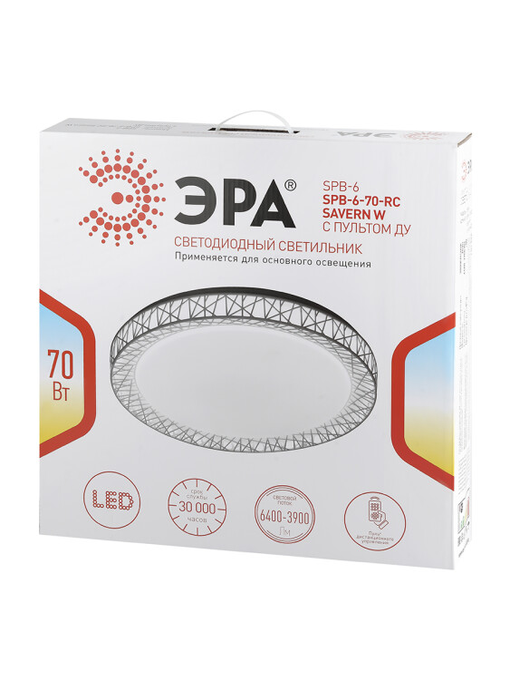 Эффектный светодиодный светильник ЭРА SPB-6-70-RC серии Savern W станет запоминающейся деталью любого интерьера. В его дизайне выделяется светлая декоративная решетка, обрамляющая белый рассеиватель, она создает неповторимый эффект во включенном режиме. Яркость и цветовую температуру светильника можно регулировать, в чем поможет пульт дистанционного управления, входящий в комплект. Цветовая температура данной модели изменяется в пределах от 3000 К до 6000 К. Основание светильника выполнено из металла, на котором расположен LED-модуль и современный безопасный драйвер. Диаметр светодиодной лампы составляет 47 см, мощность лампы 70 Вт. Благодаря своим характеристикам светильник создаст неповторимую атмосферу в комнате, комфортную и уютную.