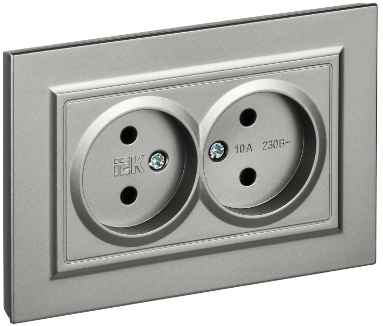 Розетка двухместная IEK РС12-2-БрС Brite (10 А, IP20) скрытой установки, в сборе, сталь