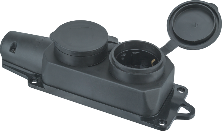 Колодка 2 гнезда Navigator NCA-BLR2-02-16A-E-IP44-BL (16 А, IP44, каучук), с заземлением, с заглушками, черный
