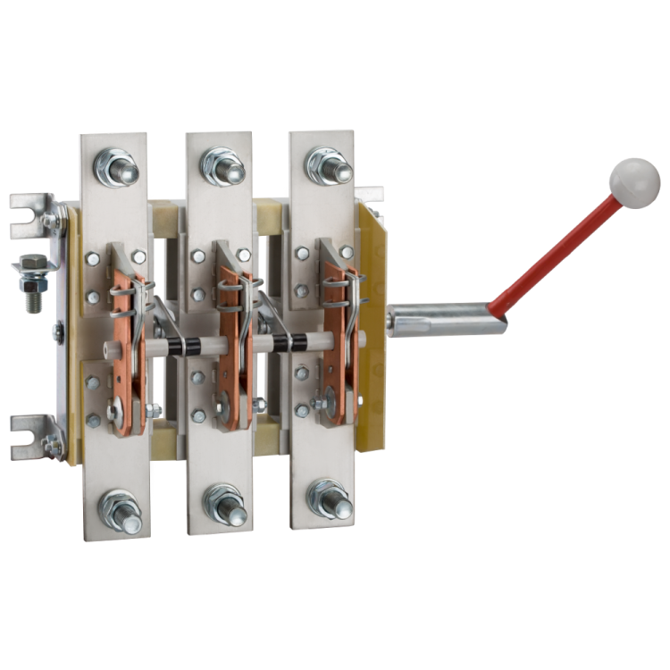 Выключатель-разъединитель 3 полюсный на номинальный ток 1600 А, где установлена съемная рукоятка, а механическая износостойкость составляет 6300 циклов.