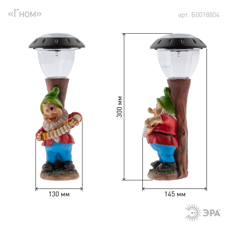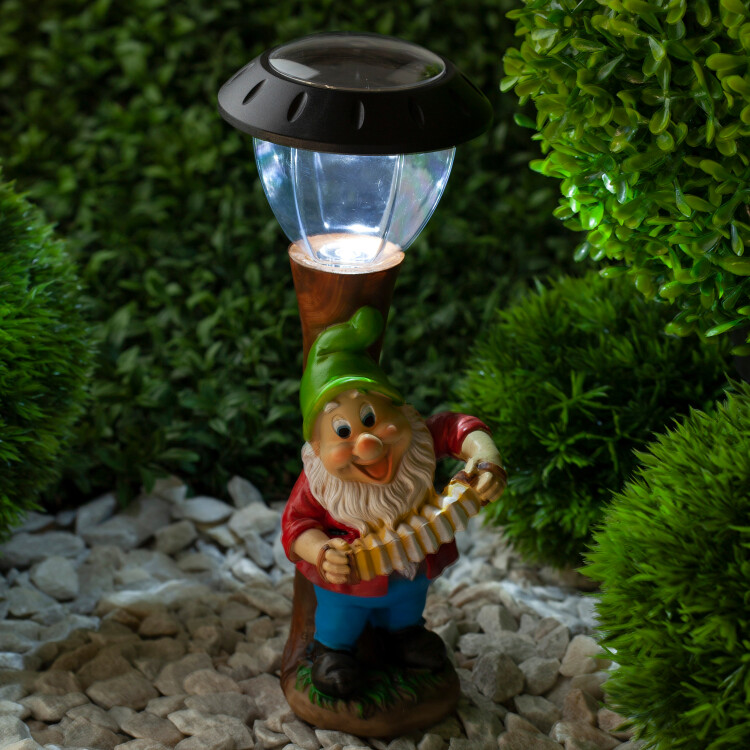 "Керамический" светильник из серии "фигур" - Гном. В дневное время суток служит прекрасным украшением, оживляет пейз аж. Ночью - декоративной подсветкой кустарника, газона, альпийской горки. Обращаем Ваше внимание, что перед использованием фигурки её необходимо включить и зарядить. Светильник заряжается в течение всего светового дня.