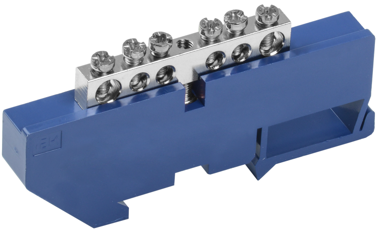 Шина нулевая 6*9 6групп комбинированный DIN-изолятор типа "Стойка" синий на DIN-рейку IEK