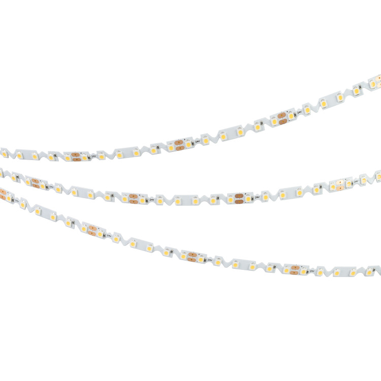 Гибкая светодиодная лента RZ серии A120 с фигурной платой в форме волны, легко изгибается на плоскости. Светодиоды SMD 2835, 120 шт/м, белая плата шириной 6 мм, скотч 3М. Цвет ДНЕВНОЙ 4000K, индекс цветопередачи CRI>90, угол 120°. Питание 24 В, мощность 9.6 Вт/м (48 Вт на 5 м). Размеры 5000х6х1.3 мм. Мин. отрезок 50 мм, 6 светодиодов. Цена за 1 м. Обязательна установка на профиль. Кратность заказа поставщику: 5 м.