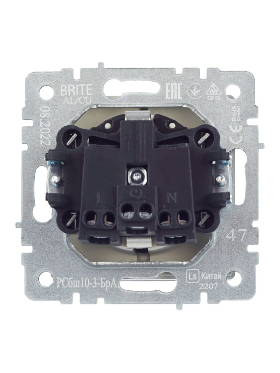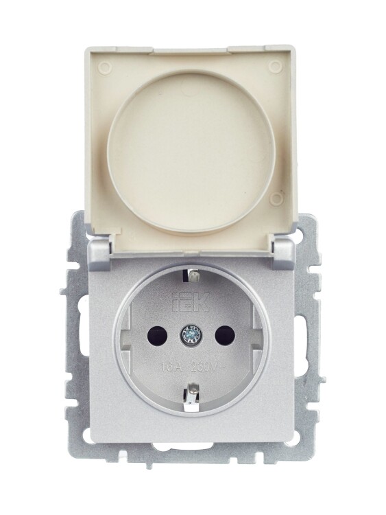 Брайт алюминий розетка скрытая 1-мест заземление с крышкой шторки IP20