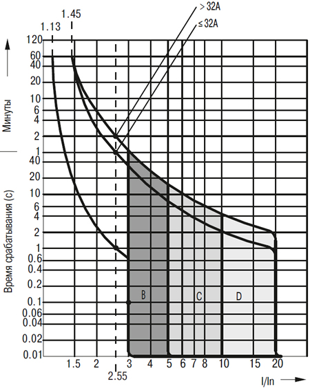- С - характеристики срабатывания (B, C, D).