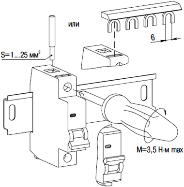 | Момент затяжки винтов контактных зажимов, Н*м | 2,5 ±0,5 (рекомендуемый) / 3,5 (максимальный) |