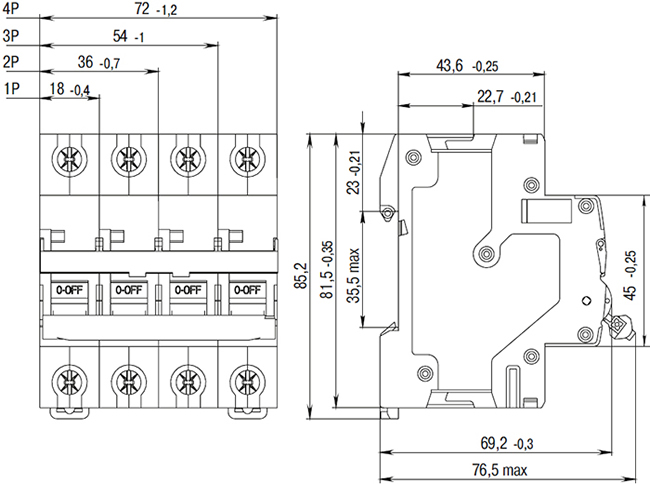 | Количество полюсов | 1 |
