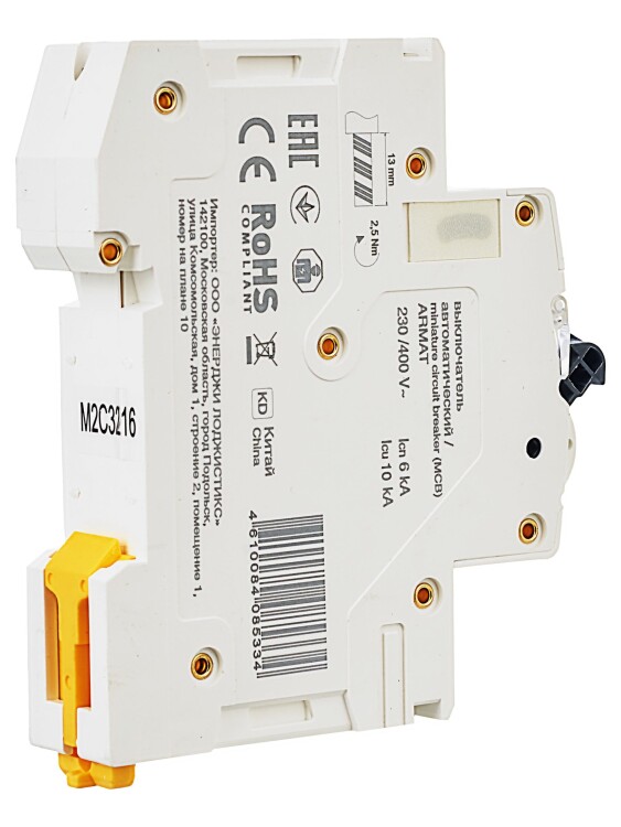 Автоматический выключатель IEK Armat серии M06N с номинальной отключающей способностью 6 кА предназначен для коммутации электрических цепей с напряжением до 400 В переменного тока частоты 50 Гц.