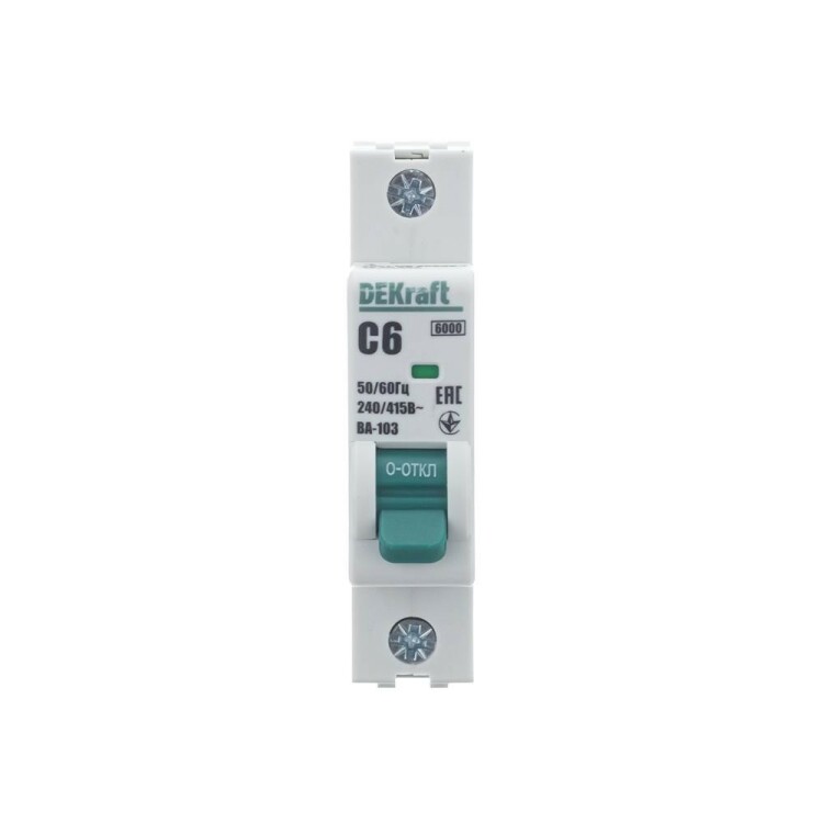 Автоматический выключатель серии ВА-103 NEW DEKraft; 1P; номинальный ток 6 А; характеристика C; отключающая способность 6 кА, что позволяет использовать аппараты в качестве вводных. 5 монолитных заклепок повышают прочность корпуса аппарата. Окошко-индикатор всегда показывает состояние контактов вне зависимости от положения рукоятки управления. Боковые каналы охлаждения повышают стабил ьность работы при высоких температурах окружающей среды. Есть возможность установки дополнительных аксессуаров с левой стороны устройства. Аппарат на 100% совместим с корпусами и оболочками DEKraft, Systeme Electric.