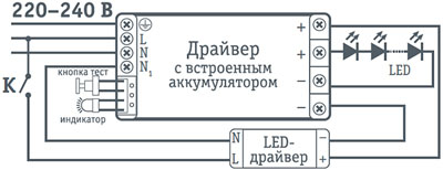 Аварийный светильник непостоянного действия Схема подключения: