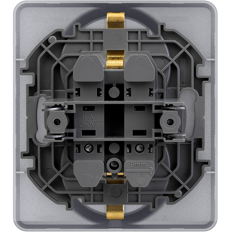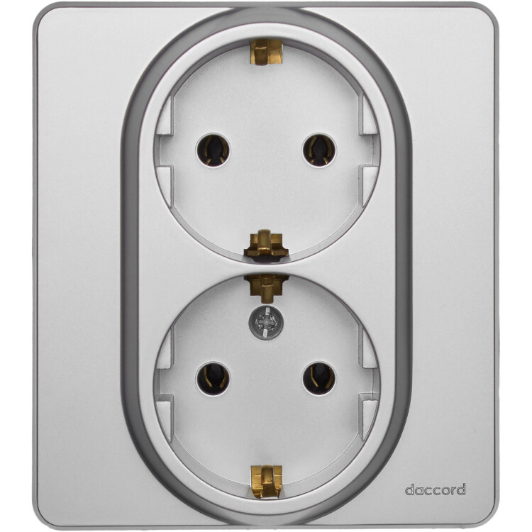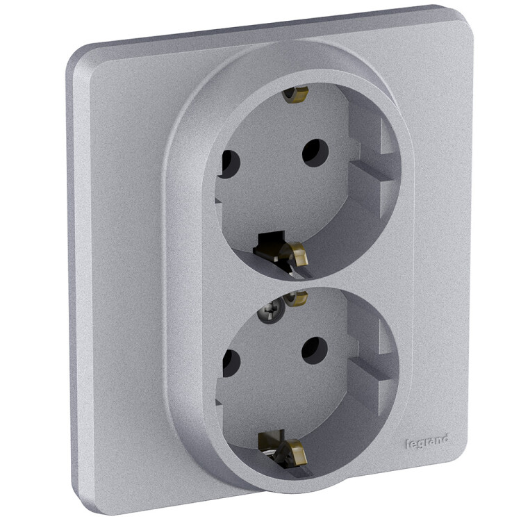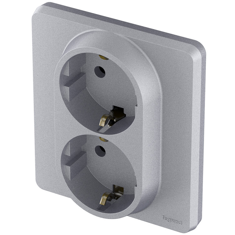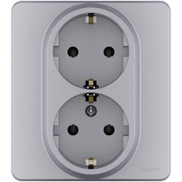Розетка двойная с заземлением для скрытого монтажа Legrand/Daccord Inspiria, цвет "Алюминий", максимальный ток 16А, напряжение ~250В, максимальная мощность 3680Вт, винтовые зажимы.