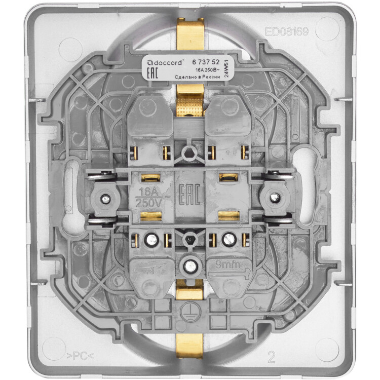 - Контактная группа изготовлена из высококачественной латуни CuZn37, имеет высокую степень упругости и сохраняет плотный контакт с вилкой при длительной эксплуатации