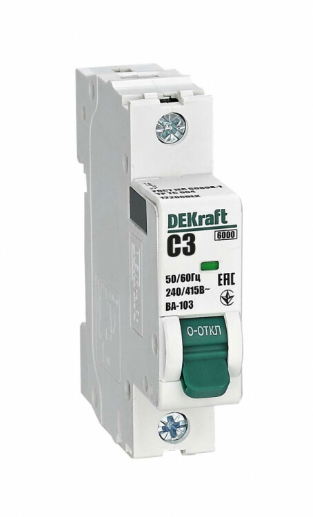 Автоматический выключатель серии ВА-103 NEW DEKraft; 1P; номинальный ток 3 А; характеристика C; отключающая способность 6 кА, что позволяет использовать аппараты в качестве вводных. 5 монолитных заклепок повышают прочность корпуса аппарата. Окошко-индикатор всегда показывает состояние контактов вне зависимости от положения рукоятки управления. Боковые каналы охлаждения повышают стабил ьность работы при высоких температурах окружающей среды. Есть возможность установки дополнительных аксессуаров с левой стороны устройства. Аппарат на 100% совместим с корпусами и оболочками DEKraft, Systeme Electric.