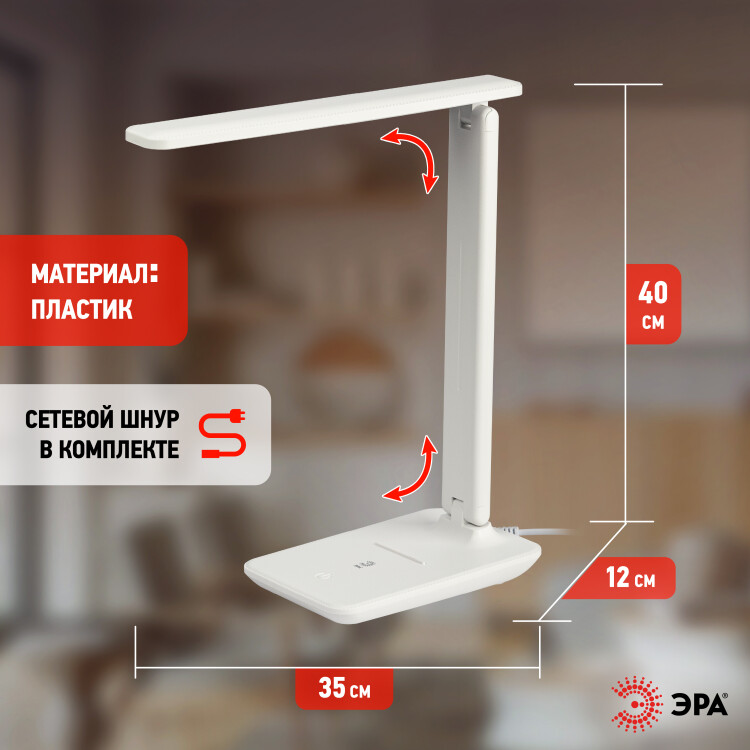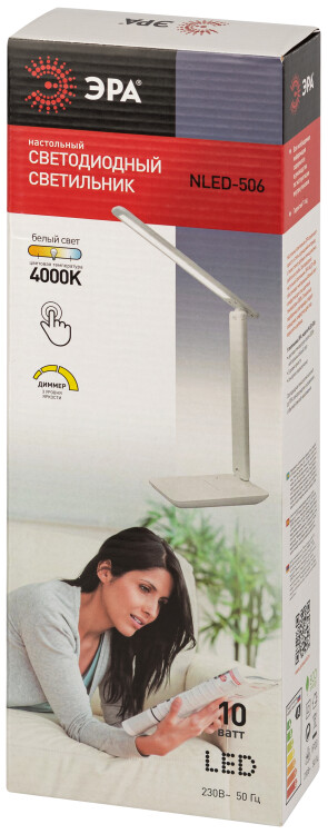 Светильник светодиодный настольный NLED-506-10W-W "Эра" (10 Вт, 500 лм, 4000 К, диммер, сенсор) на подставке, белый