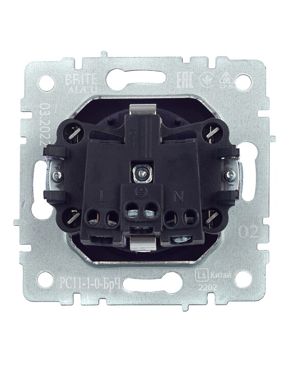 Брайт черный розетка скрытая 1-мест заземление IP20