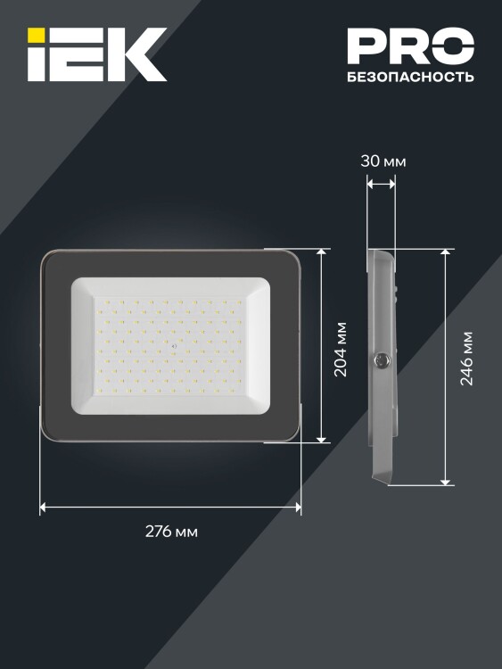 Прожектор свд 100Вт 6500К 9000лм серый IP65 120° SMD IEK