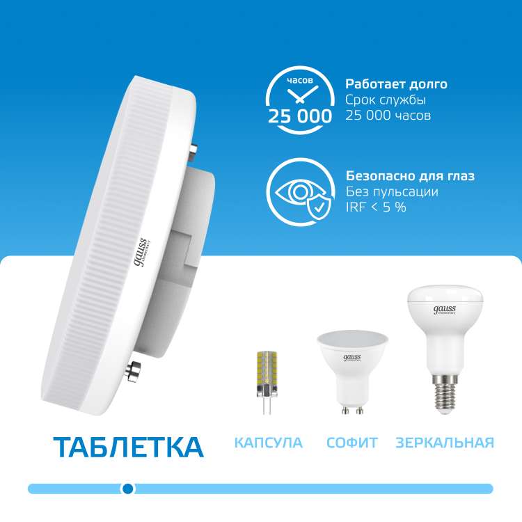 Лампа Gauss Elementary GX53 грамотное решение для подвесных потолков различной конструкции.
