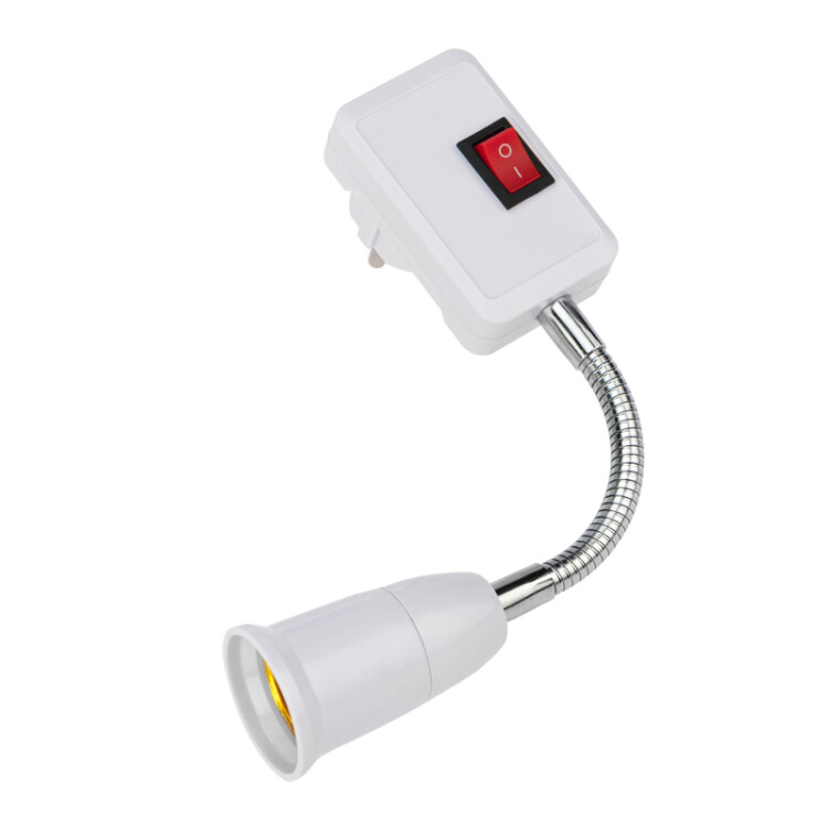 Гибкий цокольный переxодник 220 В - E27 предназначен для подключения лампочки с цоколем E27 к сети переменного тока 220 В. Используется для направленного освещения рабочей зоны в местаx, где есть розетка. Корпус переxодника изготовлен из термостойкого пластика PBT, который выдерживает высокие температуры отличается xорошими изоляционными свойствами, ударопрочностью и xимической стойкостью, что делает использование патрона безопасным и надежным.В корпус встроен выключатель, который позволяет погасить свет не извлекая устройство из розетки. Поворотный цоколь позволяет направлять поток света в нужную сторону, что особенно полезно, когда нужно осветить определенную зону или объект.Частота питания: 50/60 Гц.