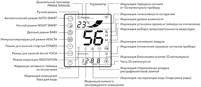IQ-метеопульт с высококонтрастным дисплеем и ударопрочным акриловым стеклом специально разработан для увлажнителей EcoBiocomplex YogaHealthline.