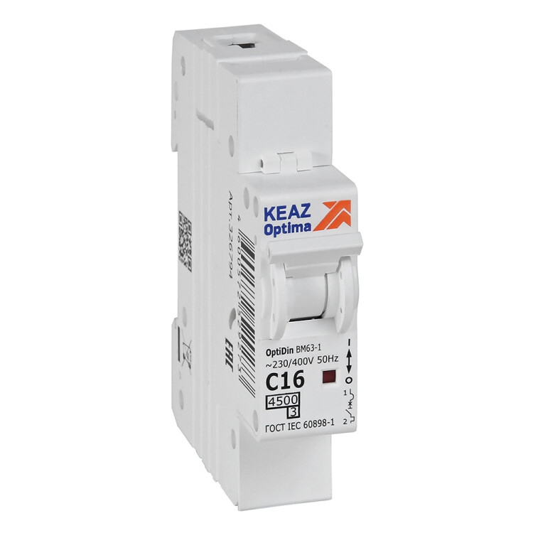 Выключатель автоматический модульный BM63-1C16-4,5-УХЛ3 OptiDin КЭАЗ (1Р, 16 А, характеристика C, 4,5 кА)