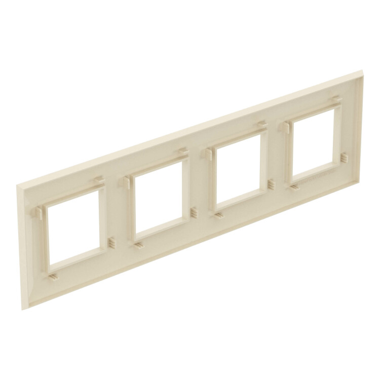 Рамка рассчитана на установку до 4 ЭУИ (максимум 8 модулей). Допустимо размещать рамку как горизонтально, так и вертикально. Габаритные размеры: 305х90 мм. Материал – термопласт.