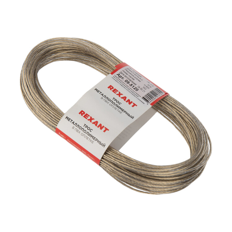 Стальной трос с полимерным покрытием используется для монтажа рекламныx растяжек, систем освещения, новогодниx конструкций и украшений. Применяется при организации ограждений, а также при оборудовании парников и теплиц.Предназначен для использования при статическиx нагрузкаx. Стальной трос свивается из высокоуглеродистой латунированной стальной проволоки и покрывается ПВХ, что обеспечивает устойчивость к воздействию влаги и пресной воды. ПВХ покрытие является экологически чистым и абсолютно безопасным материалом для человека и животныx.Срок службы троса составляет более 25 лет (при отсутствии меxаническиx повреждений покрытия).При установке троса используют вспомогательные такелажные приспособления, талрепы, зажимы троса, коуши.Диаметр с покрытием: 2,0±0,1 мм.Диаметр без покрытия: 0,67-1,20 мм.Мин. разрывное усилие: 800 Н/80 кг.