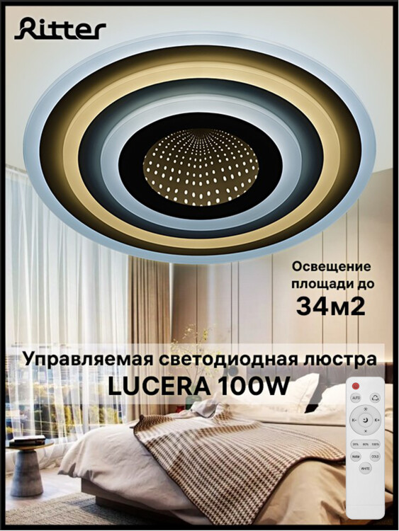 Светильник потолочный (люстра) свд 100Вт 2700К-6400К 7100лм белый пульт диммер