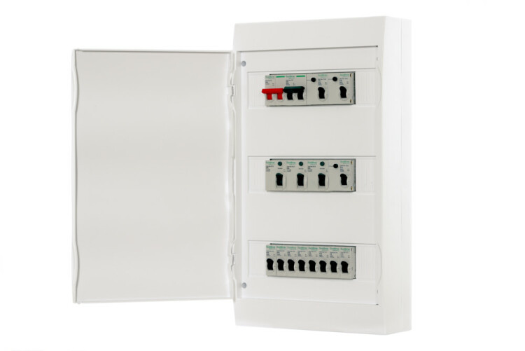 Распределительный щиток Systeme Electric серии City9 Box предназначен для установки аппаратов защиты и управления бытовой электроустановки. Щиток вешается на стену, имеет 3 DIN-рейки для установки 36 аппаратов по 18 мм. Дверь щитка - белая, может быть установлена с правой или левой стороны. Щит Systeme Electric City9 Box на 100% совместим с модульным оборудованием DEKraft и Systeme Electric.