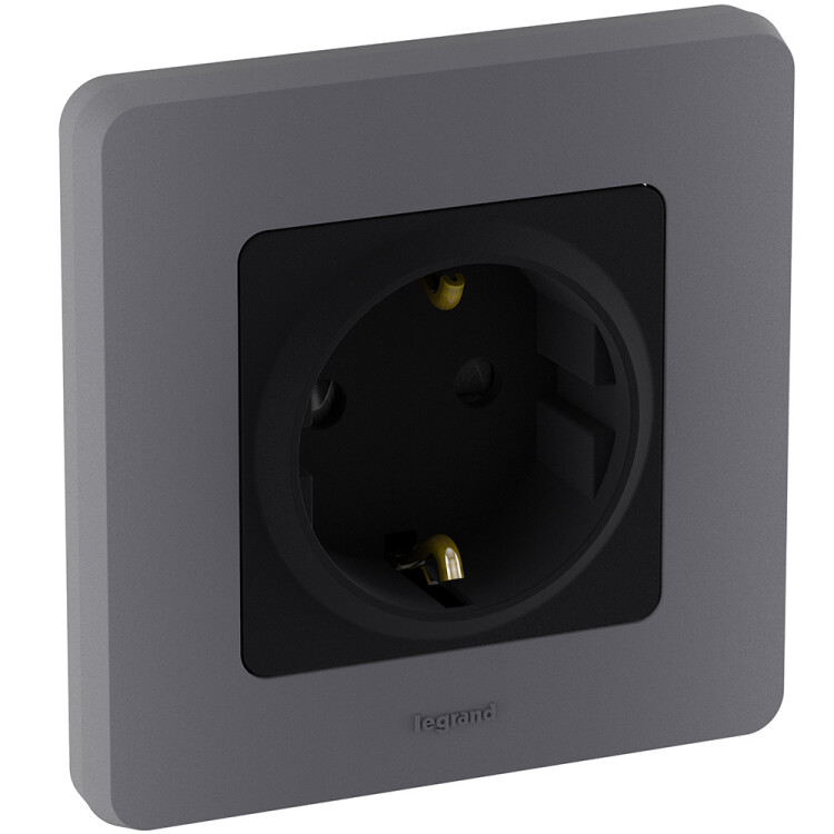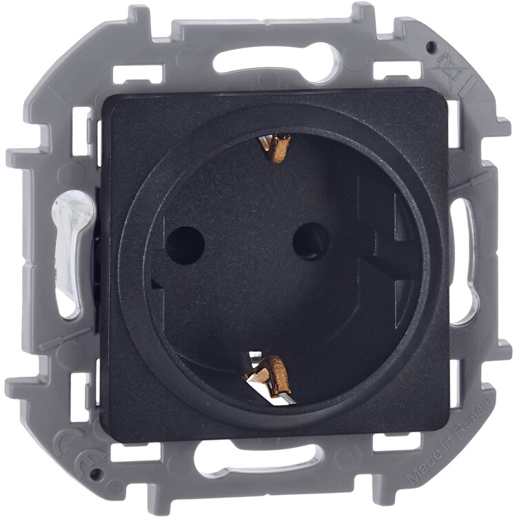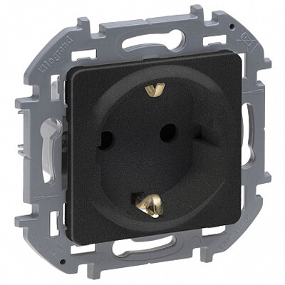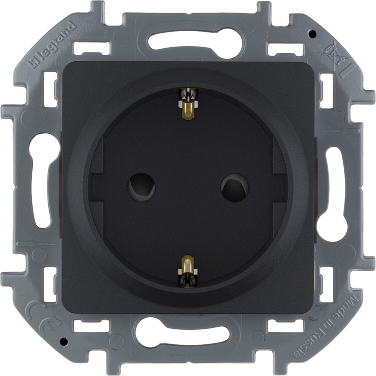 Розетка одноместная Legrand 673733 Inspiria (16 А, IP20) скрытой установки, с заземлением и защитными шторками, антрацит