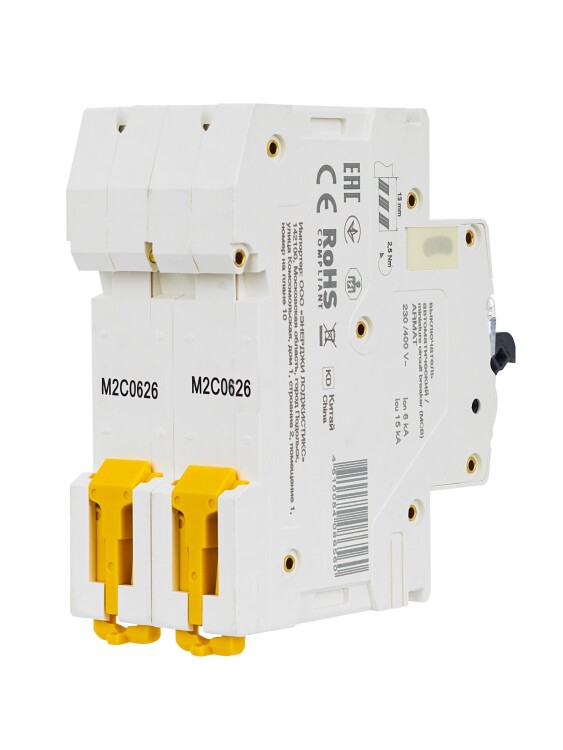 Автоматические выключатели ARMAT серии M06N предназначены для защиты цепей от перегрузки и короткого замыкания. Модельный ряд включает в себя устройства с характеристиками срабатывания B, C, D и номинальными токами от 0,5 до 63 А. Номинальная отключающая способность автоматических выключателей ARMAT серии M06N составляет 6 кА. Предельная отключающая способность варьируется в зависимости от номинала от 10 до 50 кА.