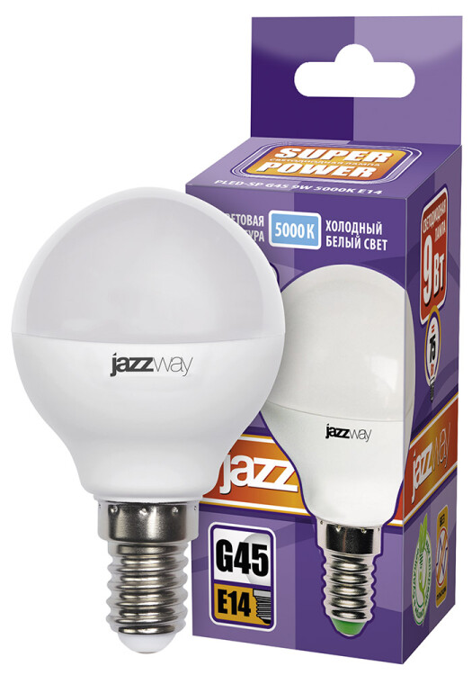 Лампа шар свд Е14 9Вт 5000К 820лм G45 матовая Jazzway
