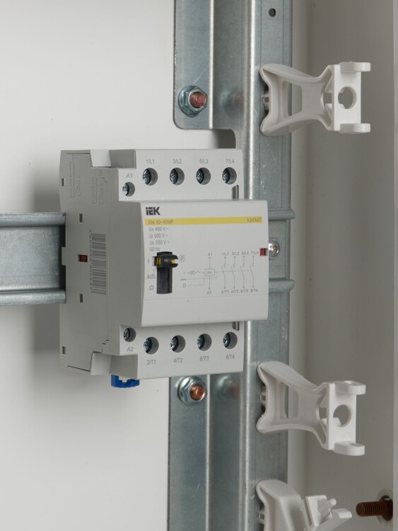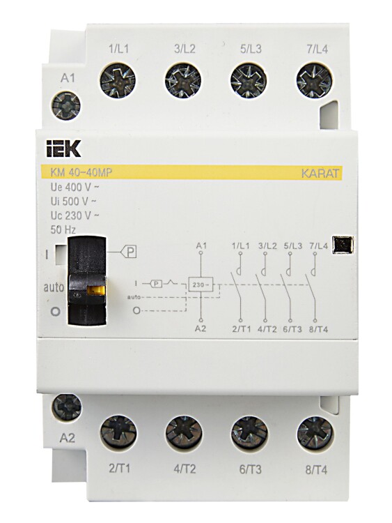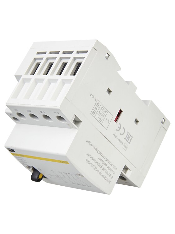 Контакторы модульные типа КМ торговой марки IEK предназначены для применения в сетях переменного тока напряжением до 400 В частоты 50 Гц и служат для коммутации слабоиндуктивных нагрузок с номинальным током до 63 А.