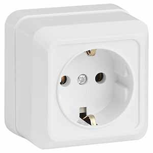 Розетка одноместная Intro 2-202-01 Quadro (16 А, IP20) открытой установки, с заземлением, белый