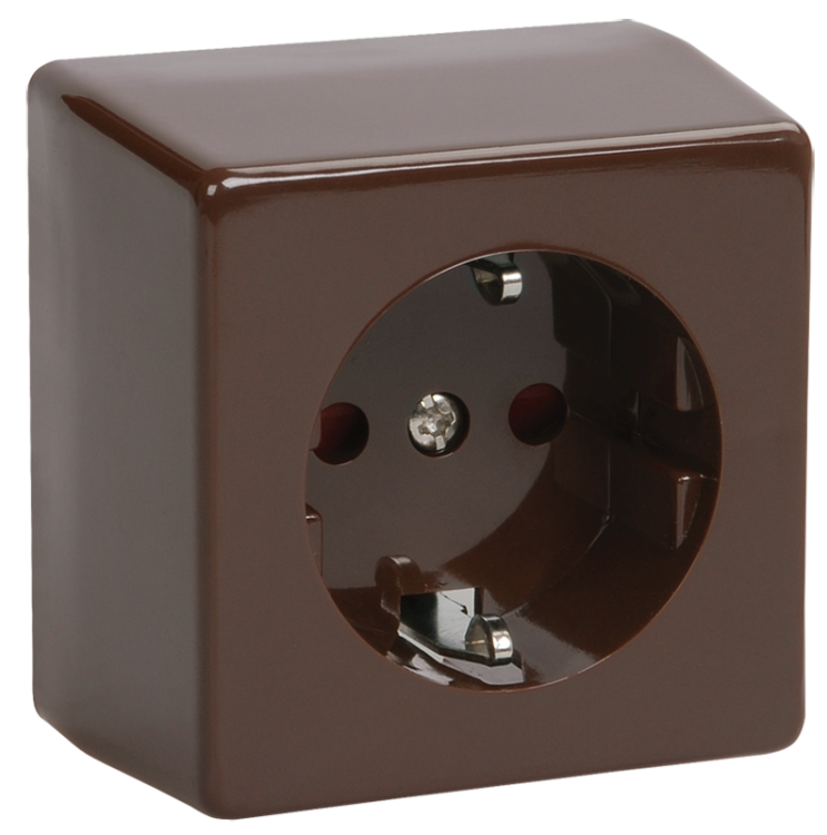 Розетка одноместная РС20-3-БК IEK ERB11-K30-16-DC "Брикс" (16 А, IP20) открытой установки, с заземлением, с защитными шторками, коричневый