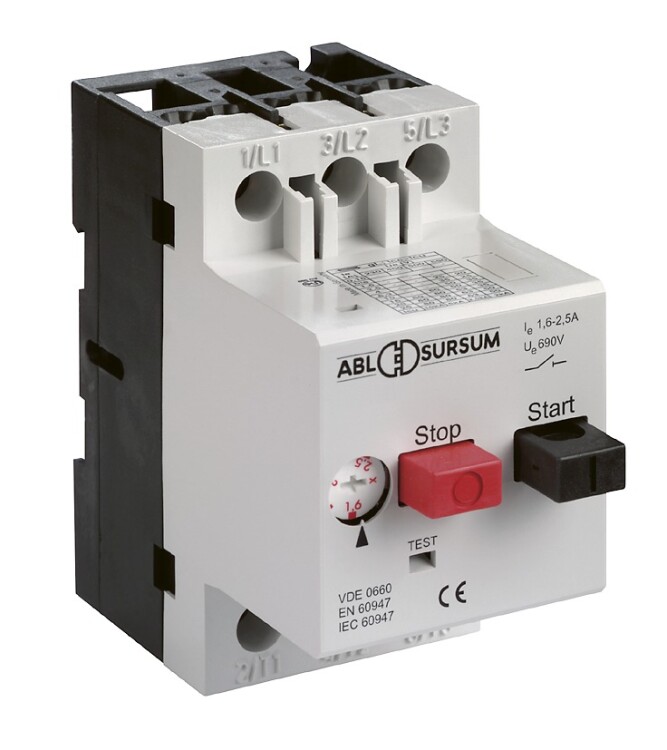 Автоматический выключатель защиты электродвигателей типа MS с расцепителями по перегрузке и короткому замыканию, согласно DIN VDE 0660 часть 102, IEC 60947-4-1, UL апробир., номинальный ток 4-6,3 A, ток срабатывания при коротком замыкании 12 x Iu, с главным выключателем и функцией расцепления, с температурной компенсацией, чувствительность к обрыву фазы, в диапазоне значений номинального тока до 6,3 A при 400 В устройства защищены от короткого замыкания, в диапазоне значений номинального тока > 6,3 A при 400 В коммутационная способность составляет 6 кА