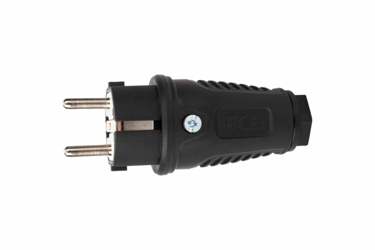 Вилка кабельная прямая PCE 0511-ss Taurus2 (16 А, 250 В, резина, IP54) с заземлением, черный / черный