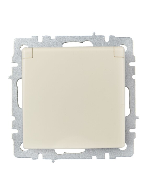 Розетка одноместная IEK РСбш10-3-БрКр Brite (16 А, IP20) скрытой установки, с заземлением и защитными шторками, с крышкой, бежевый