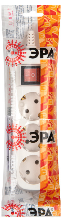Колодка 3-мест 16А белый пластик заземление выкл IP20 ЭРА