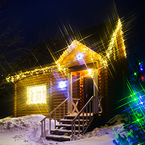 - 4 облицовочные гирлянды "бахрома" (9,5 Вт) для крыши дома: 3 шт. размером 4,8 х 0,6 м, 1 шт. размером 2,4 х 0,6 м);
