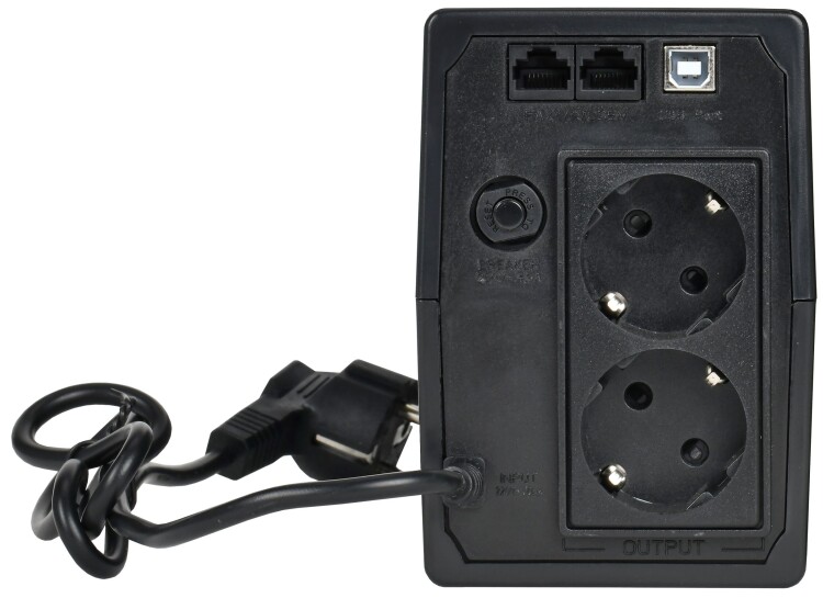 ИБП оснащен 2 разъемами SCHUKO и USB разъемом. ИБП имеет встроенный АКБ 1 шт емкостью 9Ач.