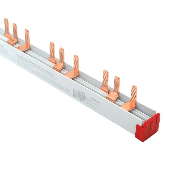Шины соединительные представляют собой пластины, выполненные из меди (шины на 100 А – из луженой меди), закрепленные в корпусе из диэлектрического материала, не поддерживающего горение, и выпускаются стандартной длиной 1 метр. Шины соединительные делятся на два типа - FORK («вилка») и PIN («гребенка») на номинальные токи 63 и 100 А. Могут быть выполнены в одно- двух- трех- и четырехполюсном исполнений.