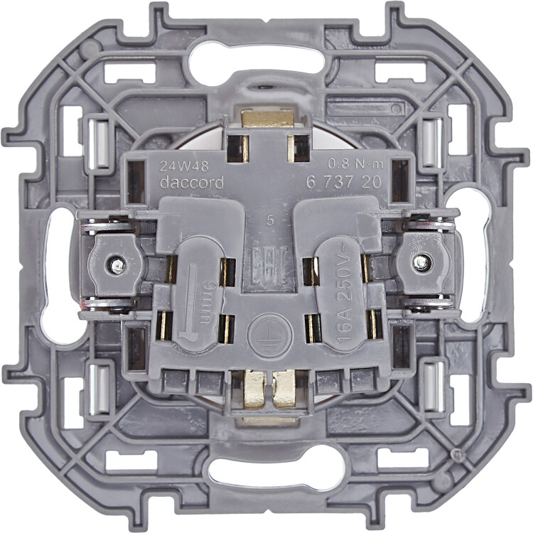 - Контактная группа из высококачественной латуни имеет высокую степень упругости и сохраняет плотный контакт с вилкой при длительной эксплуатации.