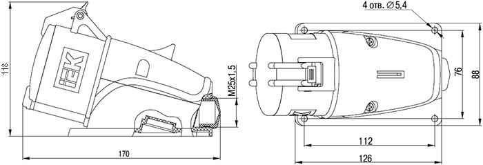 Розетка силовая стационарная для открытой проводки IEK ССИ-125 Magnum (3Р+PE+N, 32 А, 200 - 240 / 346 - 415 В, IP44)