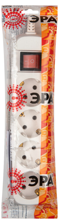 Колодка электрическая 4-местная KХ-4es "Эра" (16 А, IP20) с заземлением, с выключателем, белый