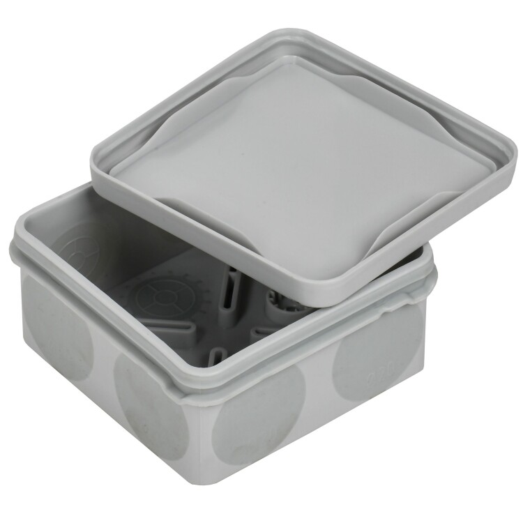 Монтажные коробки для открытого монтажа предназначены для разветвления проводов и кабелей, также для скрытия и дополнительной защиты мест коммутации. Используются как часть системы электрической канализации, состоящей из жестких и гофрированных труб. Коробки производятся из материалов, которые не содержат галогенов. Коробки обладают повышенной степенью защиты IP67 и устойчивостью к ультрафиолетовому (УФ) излучению и могут быть использованы на открытом воздухе, а также во влажных и пыльных помещениях. Подходят для прямого монтажа. Материал изготовления: полипропилен. Материал коробок является безгалогенным («HF» — halogen-free). Цвет: серый. Степень защиты: IP67. Количество вводов: 8. Размер: 80х80х40мм.