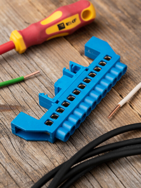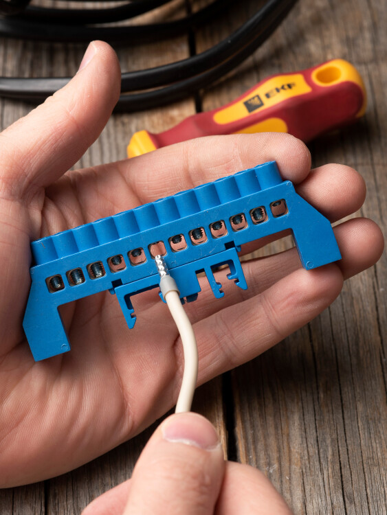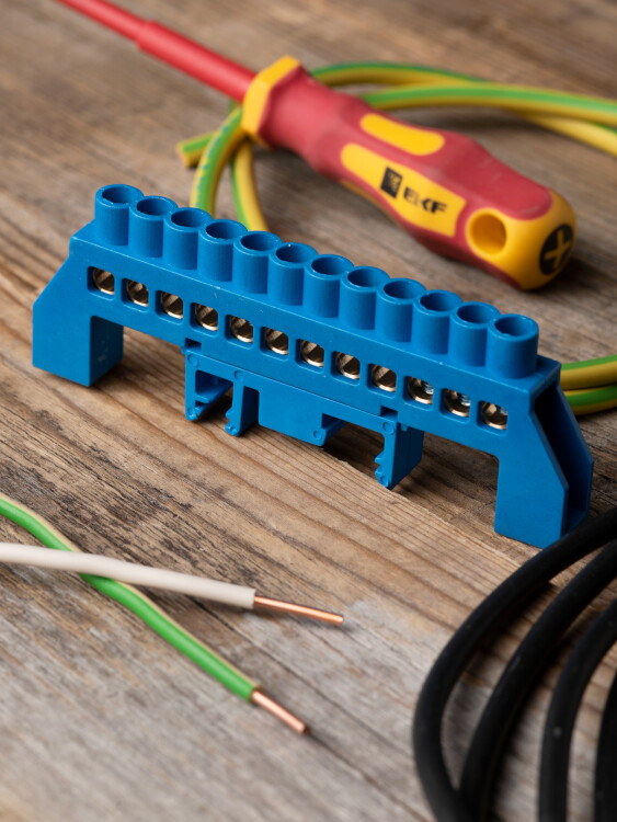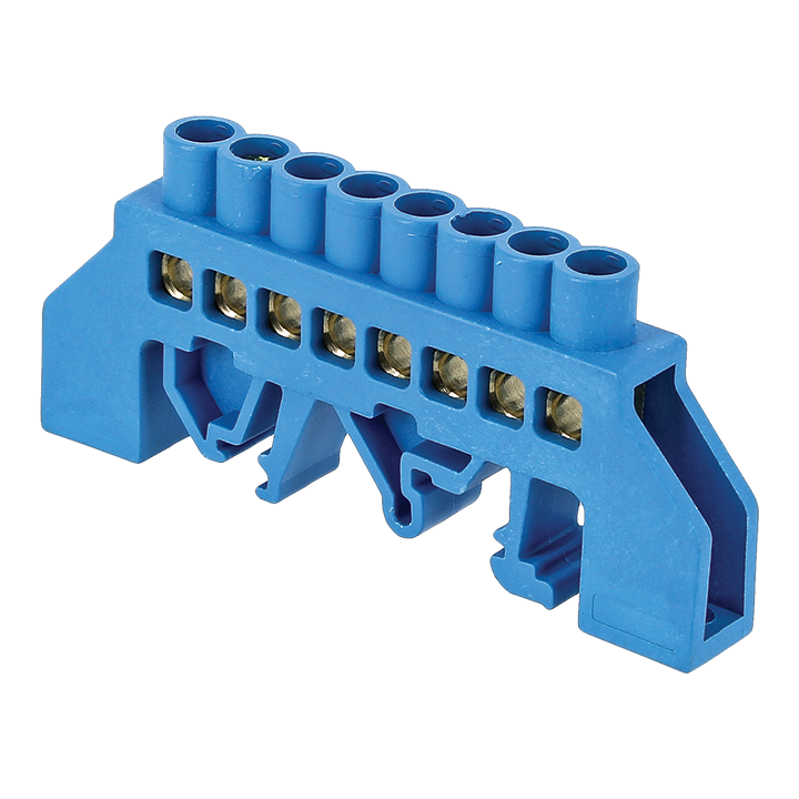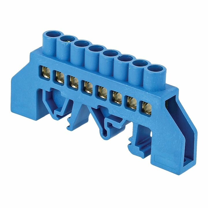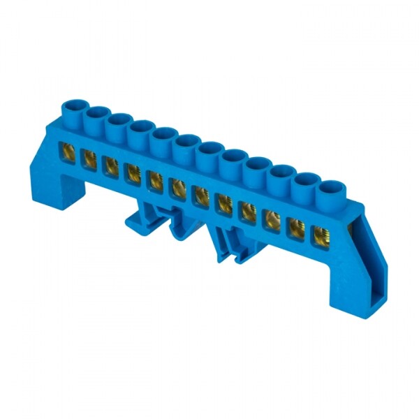 Шина нулевая 8*12 12групп комбинированный DIN-изолятор типа "Стойка" синий на DIN-рейку/монтажную панель EKF